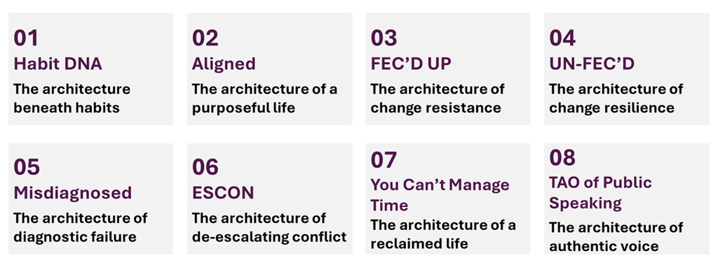 Every person and every organization has an architecture — a set of beliefs, patterns, and forces operating beneath the surface. Most people don't know it exists. They keep addressing symptoms, applying fixes, and wondering why nothing holds. James's entire body of work exists to make that architecture visible.